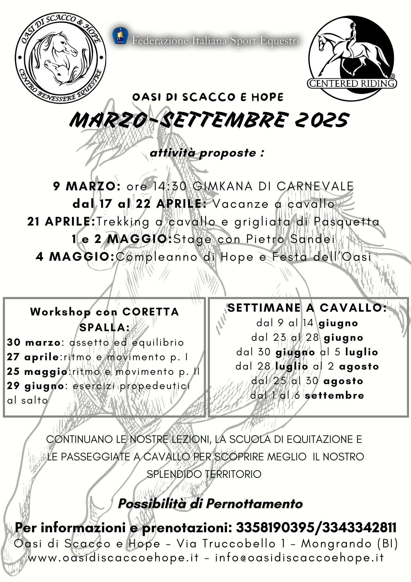 Il 21 aprile 2025, presso l'Oasi, avrete l'opportunitร  di partecipare a un emozionante Trekking a cavallo, durante il quale esploreremo le meravigliose valli biellesi. Dopo l'avventura, ci ritroveremo per un momento di...